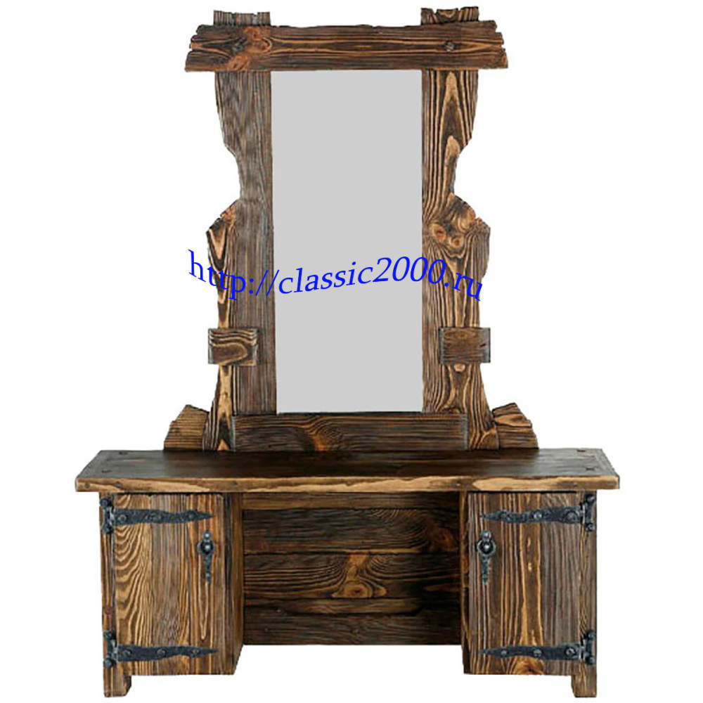 Зеркало-трюмо. Массив сосны брашированное под старину. Высота 185 см. ширина 140 см. глубина 45 см. По желанию размеры можно изменить. Большая цветовая гамма.