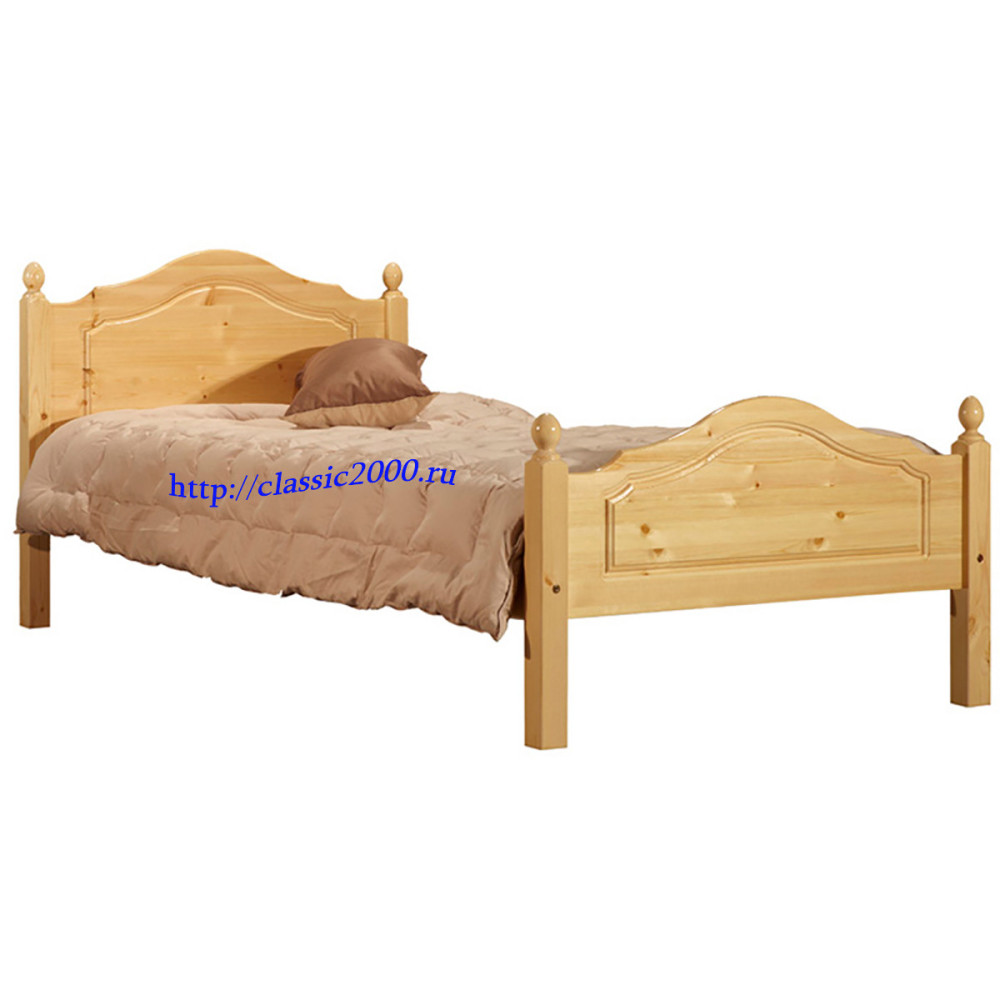 Кровать из массива сосны "Кр-5". Высота спинки у изголовья 98 см., высота спинки у ног 65 см, длина матраса 190-200 см., ширина матраса 90-180 см. По желанию размеры можно изменить. Большая цветовая гамма. Ручная работа.