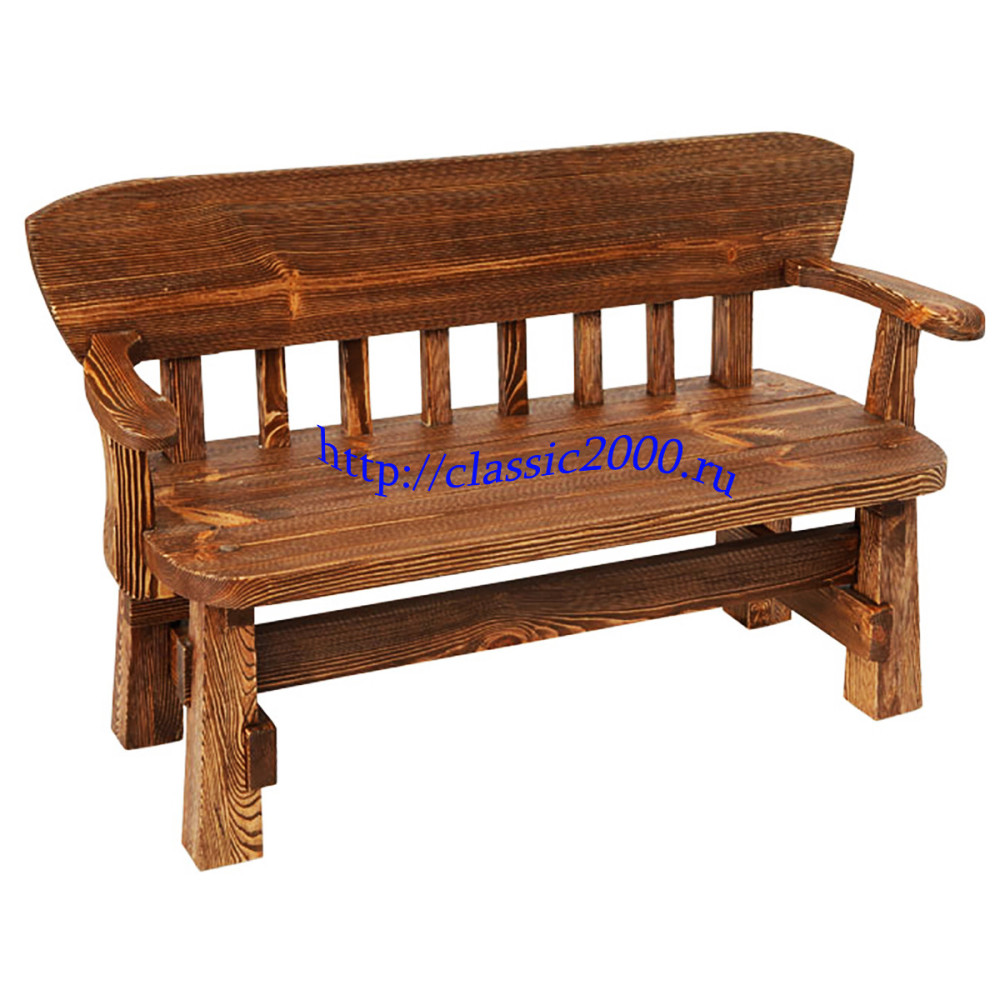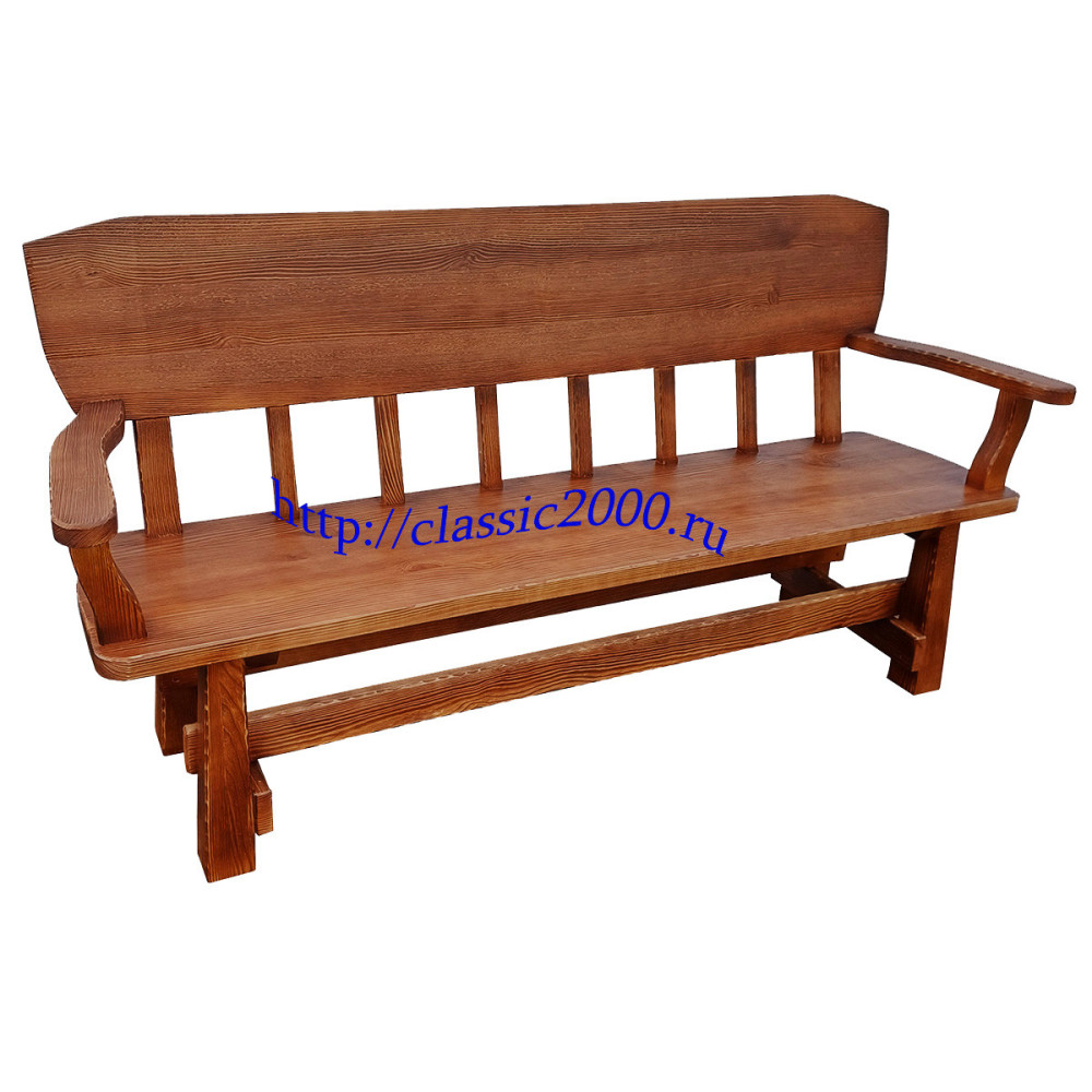 Лавка "Иван" с подлокотниками деревянная, из массива сосны. Высота спинки 98 см. Высота сиденья 43 см. Ширина сиденья 44 см. изготовлена из соснового мебельного щита толщиной 4 см.