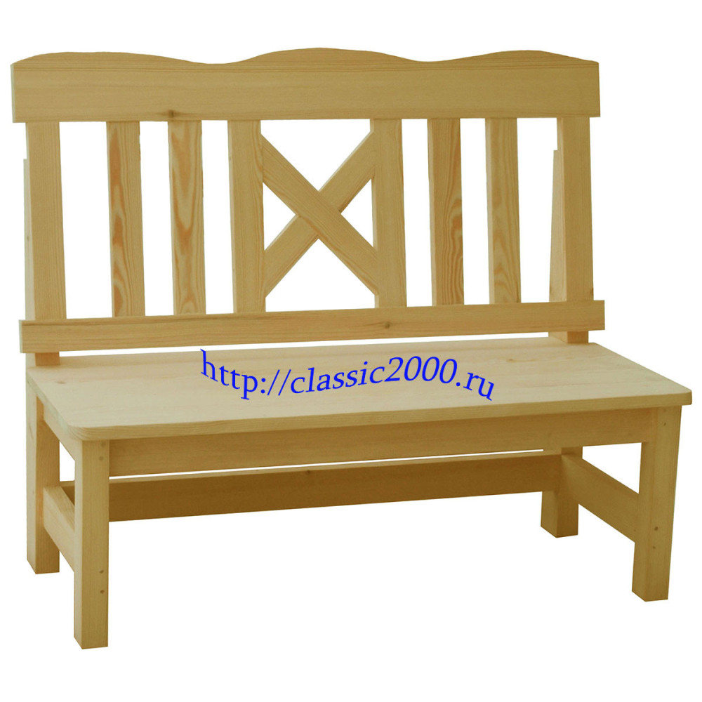 Лавка "Сказка" деревянная, из массива сосны. Высота спинки 105 см. Высота сиденья 43 см. Ширина сиденья 44 см. Изготовлена из массива сосны.