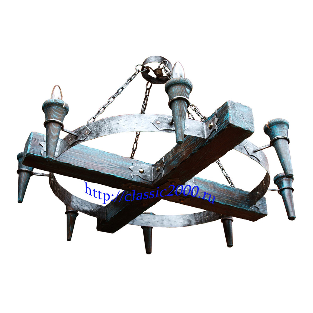 Люстра "Боярская" деревянная, массив сосны брашированная под старину. Диаметр 80 см. Высота регулируется цепью. По желанию размеры можно изменить. Большая цветовая гамма.